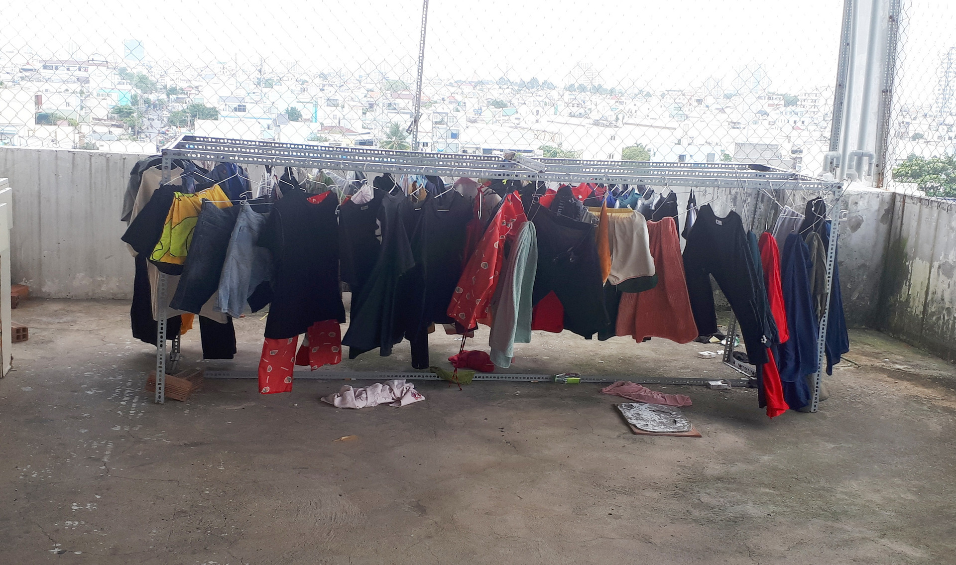 Ngoài cửa sổ khoảng 80cm được đóng khung sắt cẩn thận, căn phòng không còn khoảng trống cho không khí len vào.