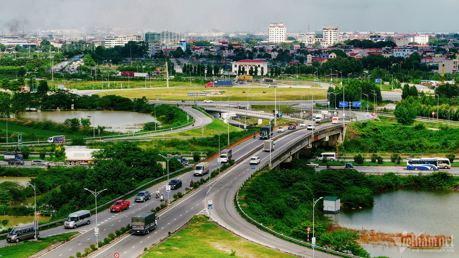 Trong ảnh, cửa ngõ ra vào thành phố từ nút giao Tây Nam kết nối đường Bắc Ninh - Nội Bài (QL 18).