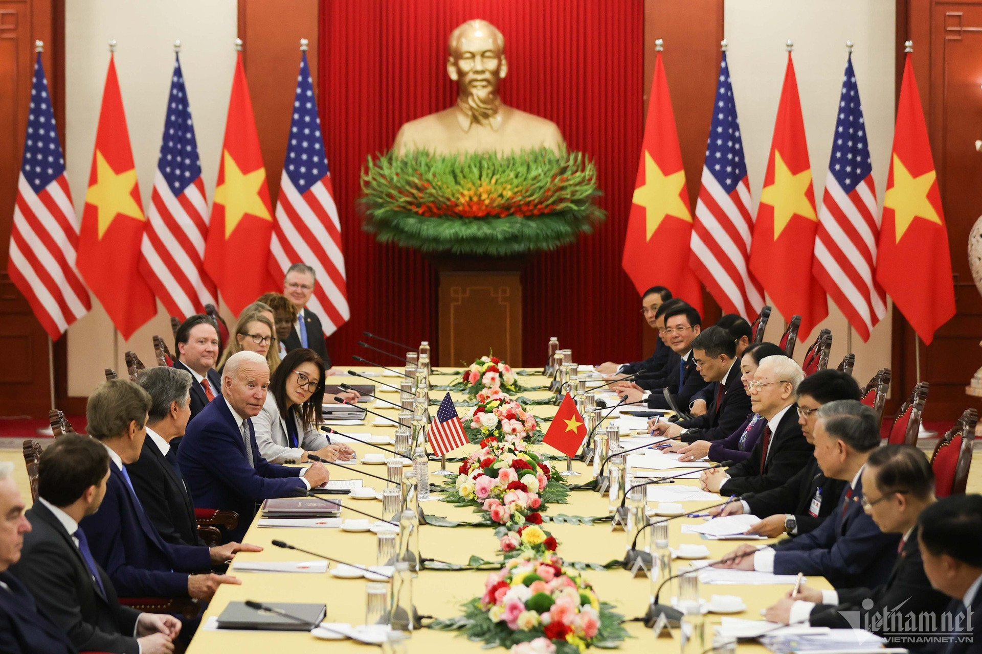 Và trong cuộc hội đàm với ông Joe Biden, Tổng Bí thư Nguyễn Phú Trọng nhấn mạnh rằng, sự hiểu biết lẫn nhau, hoàn cảnh của nhau, tôn trọng các lợi ích chính đáng của nhau và không can thiệp vào công việc nội bộ của nhau là những nguyên tắc cơ bản, luôn có ý nghĩa quan trọng trong quan hệ hai nước và quan hệ quốc tế.
