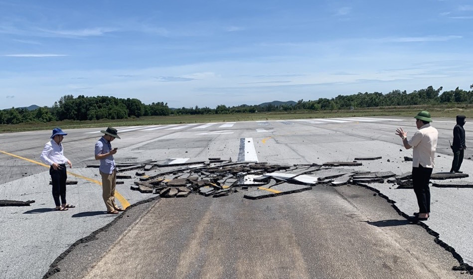 Đường băng sân bay Vinh bị hư hỏng, chưa xác định rõ nguyên nhân