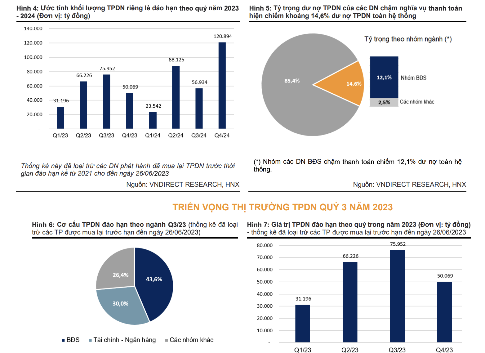 Theo VNDirect, giá trị TPDN mua lại trước hạn tăng mạnh trong Quý 2/2023 đến từ hoạt động mua lại trước hạn của nhóm Ngân hàng. Trong quý 2 nhóm Ngân hàng đã mua lại tổng cộng 39.842 tỷ đổng TPDN trước hạn, chiếm 63,7% tổng giá trị TPDN được mua lại trước hạn trong Quý 2/2023. Trong khi trong Quý 1/2023 nhóm này chỉ mua lại trước hạn 330 tỷ đồng.