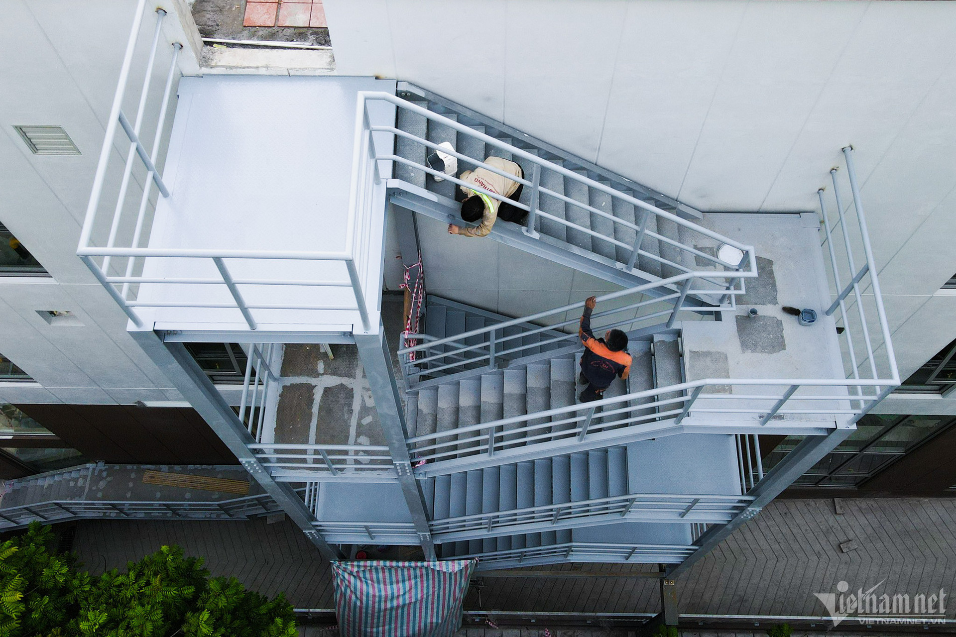 Ghi nhận thực tế, sau vụ cháy ở chung cư mini tại Khương Hạ (Thanh Xuân, Hà Nội), nhiều chủ nhà đang rục rịch lắp thang thoát hiểm bên ngoài toà nhà. Ở khu vực có không gian hẹp thang sắt cố định có thể được lắp thẳng từ tầng thượng xuống mặt đất. Có thang ở không gian rộng được lắp theo hình ziczac.