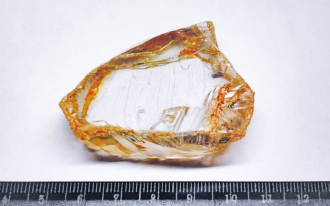 Bức ảnh được tập đoàn Alrosa công bố cho thấy, viên kim cương có hình dáng bất đối xứng khác lạ và có ánh màu vàng nâu. Đây được xem là sự kết hợp vô cùng độc đáo giữa màu sắc và hình dáng.