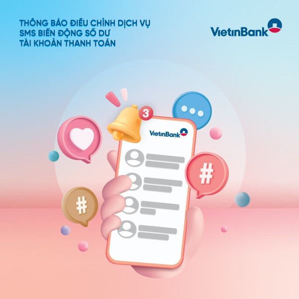 Theo thông báo mới nhất của VietinBank, từ ngày 1/9/2023, ngân hàng sẽ thực hiện thay đổi kỳ thu phí và điều chỉnh cách tính phí dịch vụ thông báo biến động số dư tài khoản thanh toán qua tin nhắn SMS.