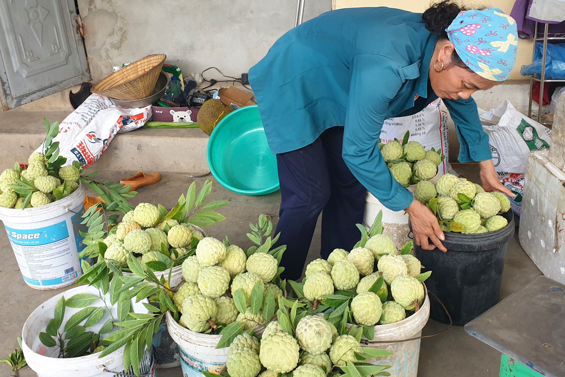 Đây chủ yếu là thương lái ở các những địa phương lân cận tới tận vườn để thu mua na về bán. Tại xã, hầu như nhà nào cũng có một khu đất rộng để trồng na. Bên trong, râm ran tiếng nói chuyện của chủ vườn với thương lái khi thu hoạch.