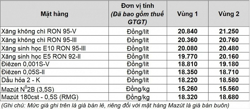 - Xăng RON95-III: Không cao hơn 20.363 đồng/lít (tăng 271 đồng/lít so với giá cơ sở hiện hành).