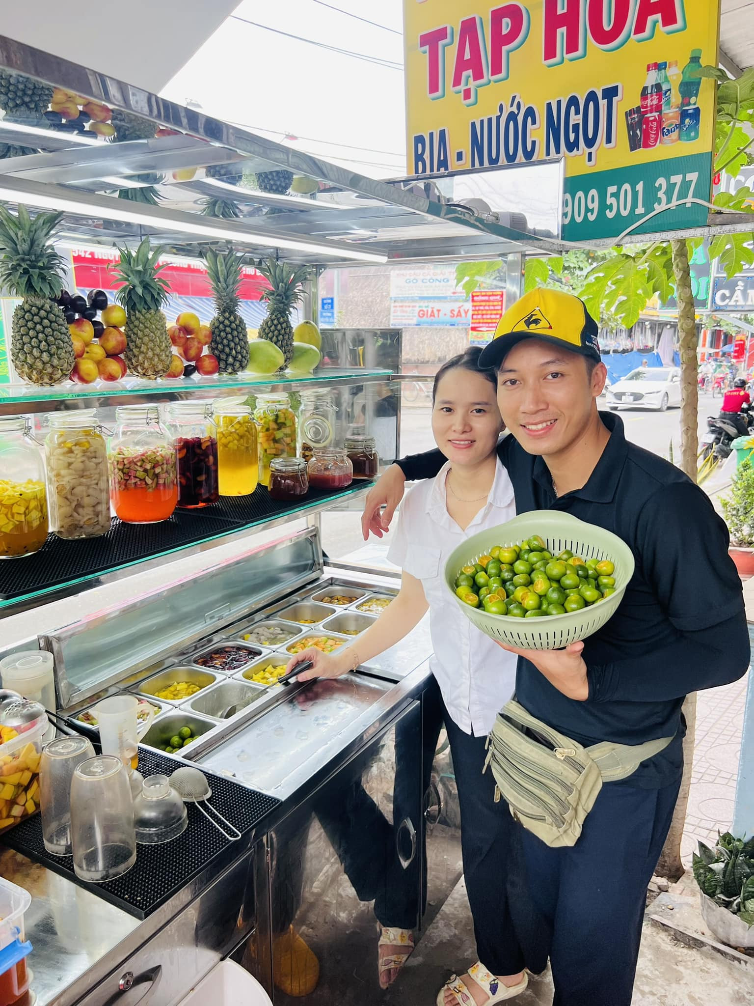 Quán trà trái cây của anh Nguyễn Bá Tùng (sinh năm 1993, Quận 9, TP.HCM) nổi tiếng trên mạng xã hội vài tháng gần đây. Lượng khách ngày càng đông, vợ chồng chủ quán chế biến hàng trăm kg trái cây tươi mỗi ngày.