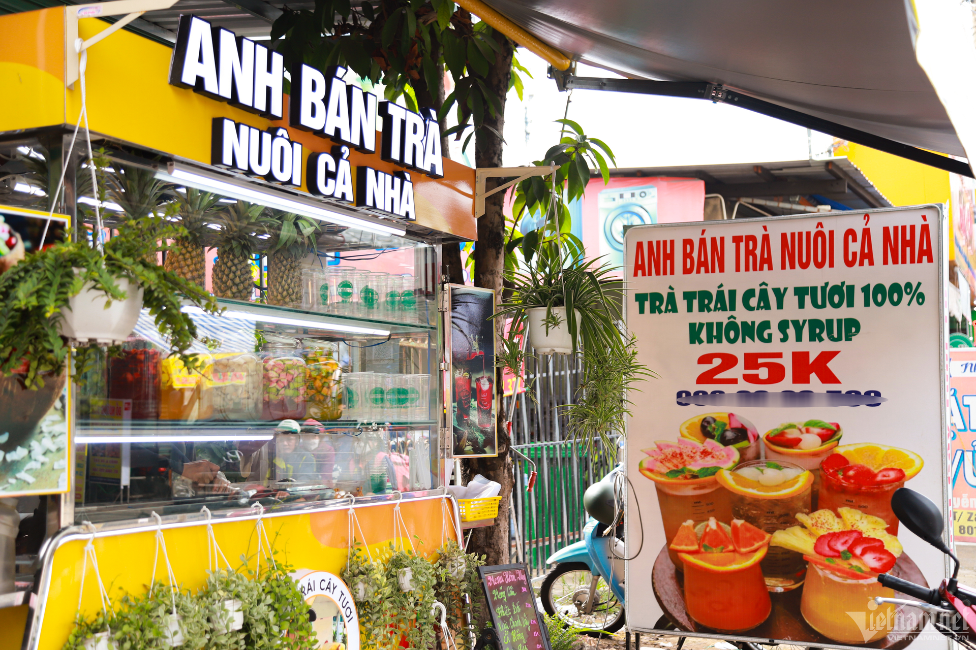 Mỗi ngày, anh Tùng đều đặn làm từ 10-12 món trà trái cây khác nhau, đồng giá 25.000 đồng/ly. Trung bình, cứ 2 tuần, anh lại đưa ra một loại trà mới để tạo sự hấp dẫn cho khách hàng. Hai món bán chạy nhất là trà nhiệt đới và xoài chanh dây. Công thức đều do anh Tùng tự sáng tạo.