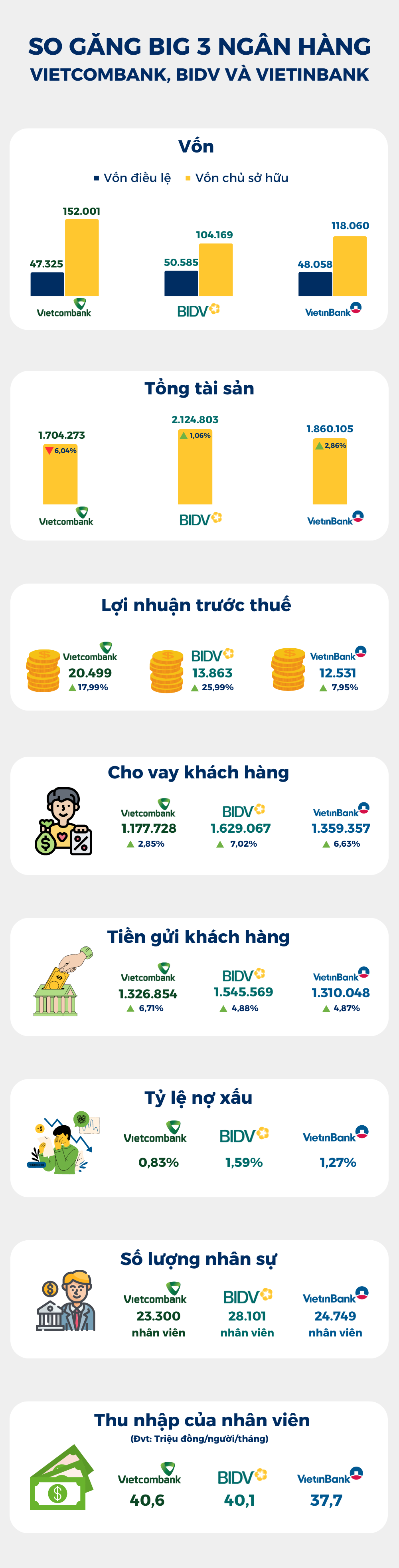 So găng Big3 ngân hàng: Vietcombank vững ngôi vua lợi nhuận, VietinBank "ngậm ngùi" về nhì nhiều chỉ tiêu