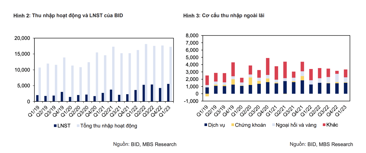 MBS cho rằng NIM của BID được kỳ vọng sẽ được cải thiện trong nửa cuối năm 2023. Trong Quý 1/2023, NIM của BID giảm 26 điểm cơ bản so với quý trước (về mức 2,67%), cao hơn mức giảm 6 điểm cơ bản trung bình của cả ngành. Xu hướng NIM giảm mạnh phù hợp khi chi phi đầu vào của các ngân hàng tăng cao từ Quý 4/2022 đến hết Quý 1/2023.