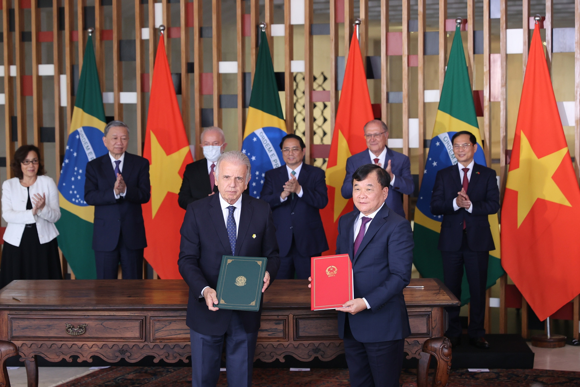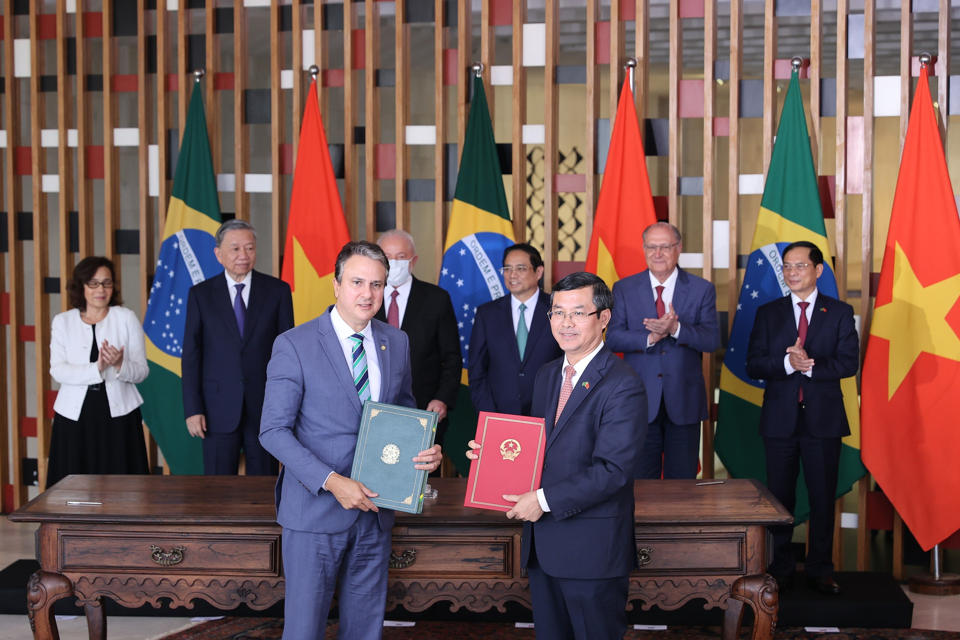 Theo đó, hai nhà lãnh đạo cùng ra Thông cáo chung và đã chứng kiến lễ ký kết các văn kiện hợp tác song phương trong các lĩnh vực ngoại giao, quốc phòng, giáo dục, nông nghiệp… nhằm tạo điều kiện phát triển mạnh mẽ hơn nữa quan hệ hợp tác, đem lại lợi ích thiết thực cho cả Việt Nam và Brazil, mang lại phồn vinh, thịnh vượng cho nhân dân hai nước.