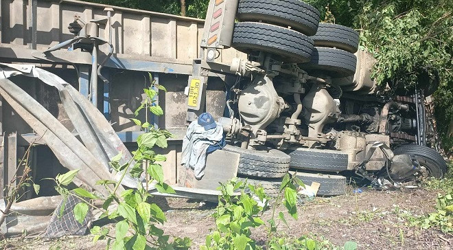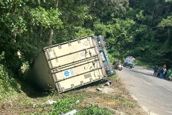 Khi đến địa điểm trên, do đang đổ đèo vào đoạn đường cong nên xe container bất ngờ lao qua làn đường ngược lại, tông gãy lan can và lật nghiêng bên mép đường. Vụ việc khiến tài xế tử nạn mắc kẹt trong cabin.
